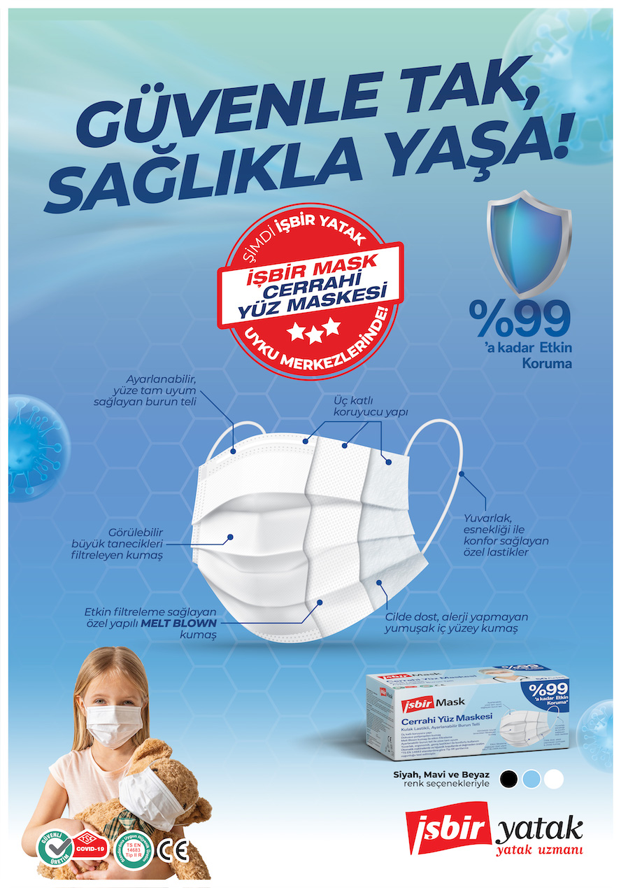 Maskelerin gerekli testlerden geçerek sertifikalandırıldığına dikkat çeken Gültepe, “Tip II’ye tam uygunluk belgesine sahip olan maskelerimiz, kalitesiyle ve kullanım ergonomisiyle ön plana çıkıyor. Yıllardır tüketicilerimize sağlıklı uykular sunan İşbir Yatak Uyku Merkezlerimiz artık sağlığın merkezi haline geliyor.